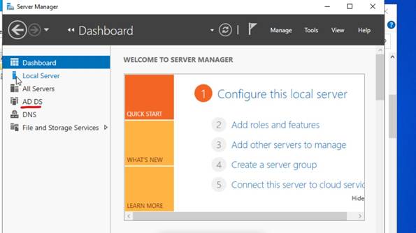 After reboot, I logged in using the domain administrator account. In Server Manager, I confirmed: