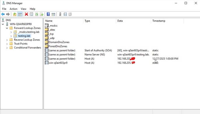 - DNS Server was installed and running