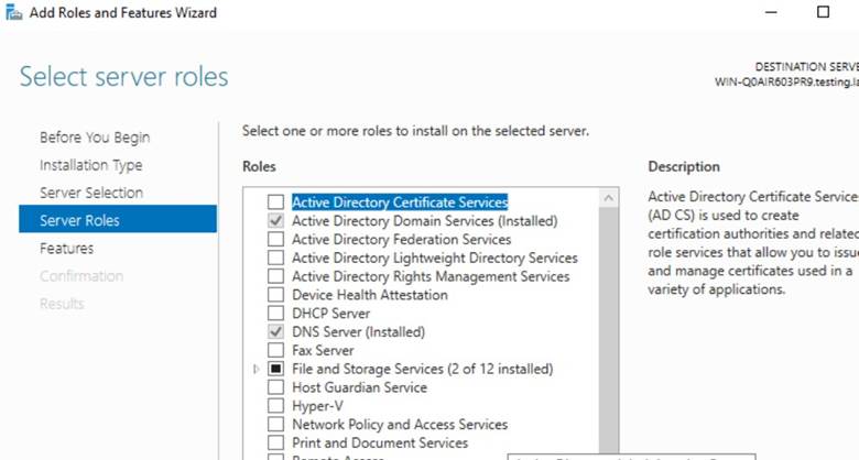 - Installation type: Role-based or feature-based