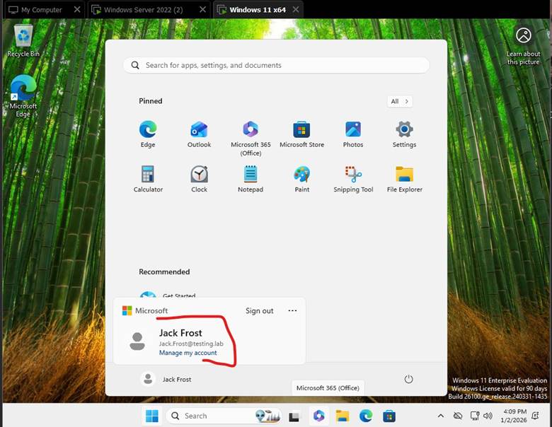 📷 Screenshot shows successful login using the Jack Frost domain account.